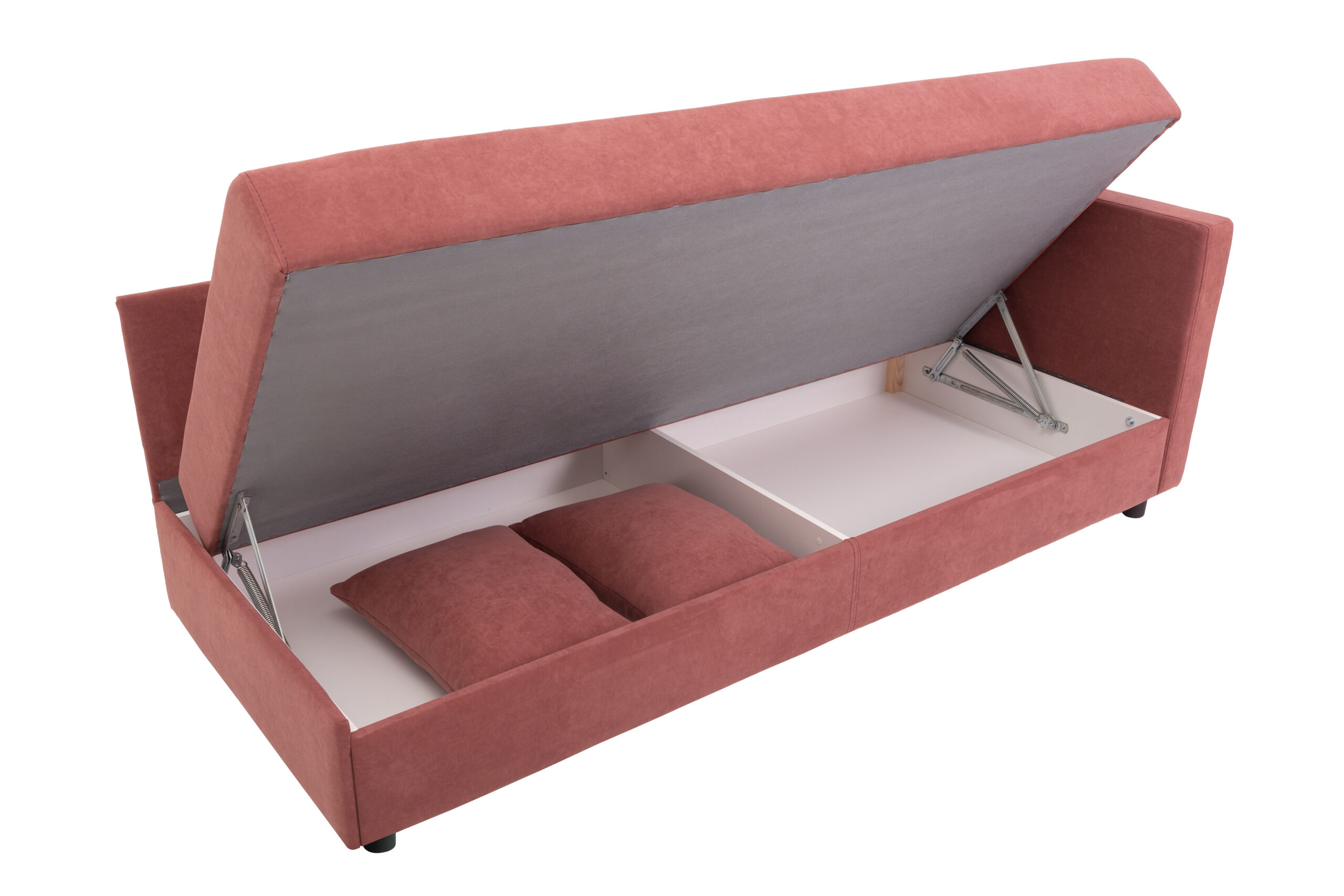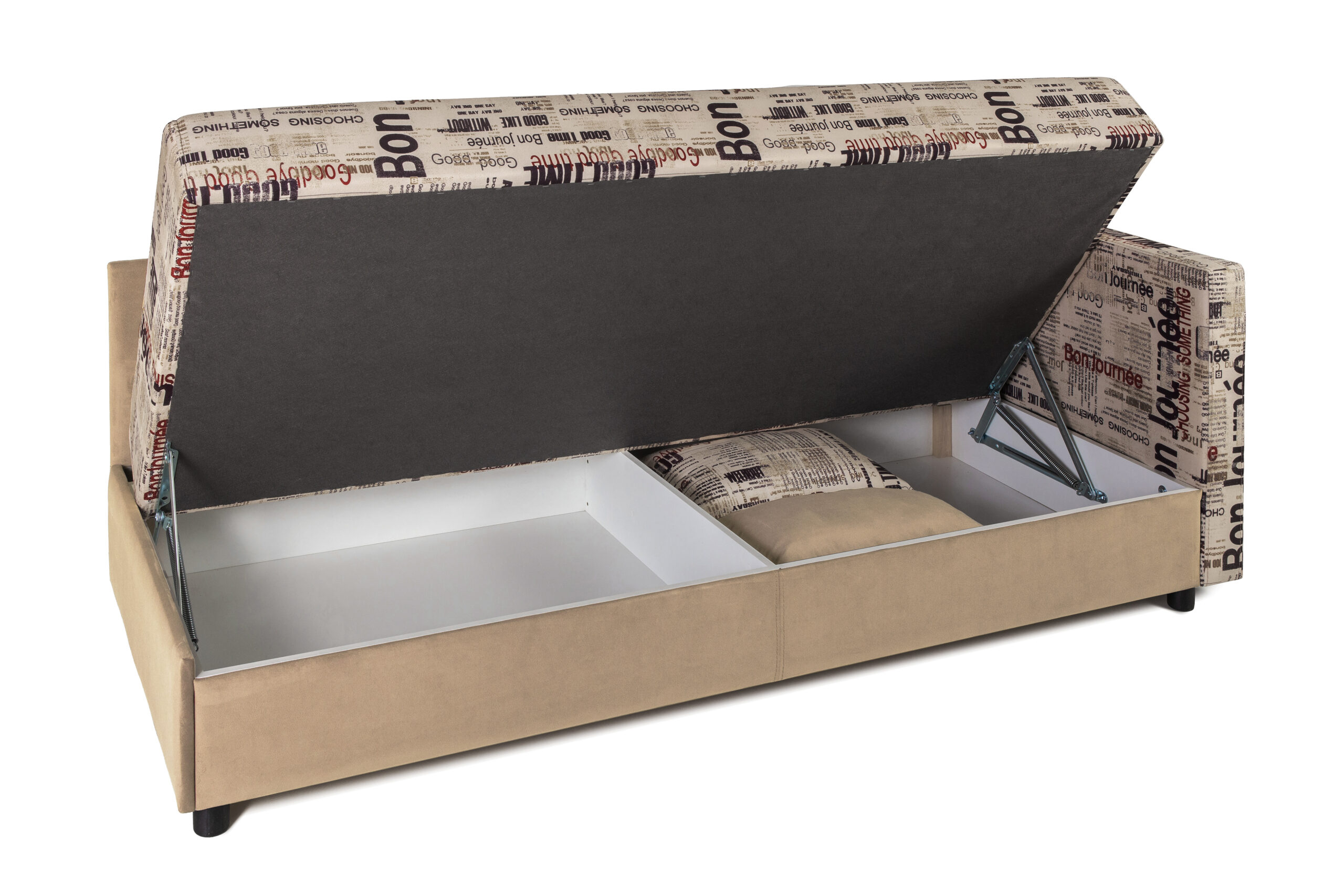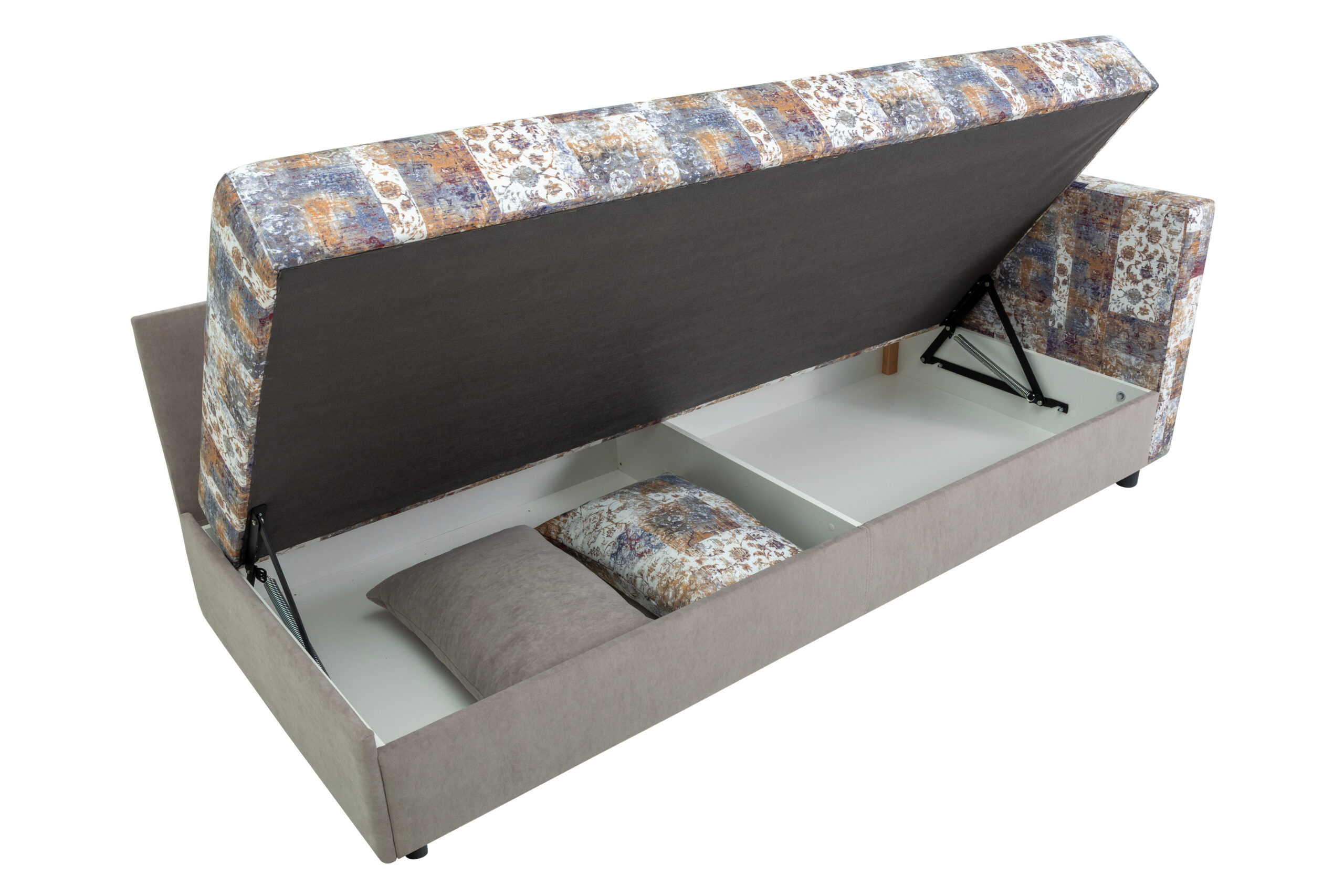 Тахта-кровать – один из типов мягкой мебели, которая отличается функциональностью и комфортностью. В ее конструкцию вмонтирован механизм, способный поднимать спальное место, открывая вместительный отсек для хранения.