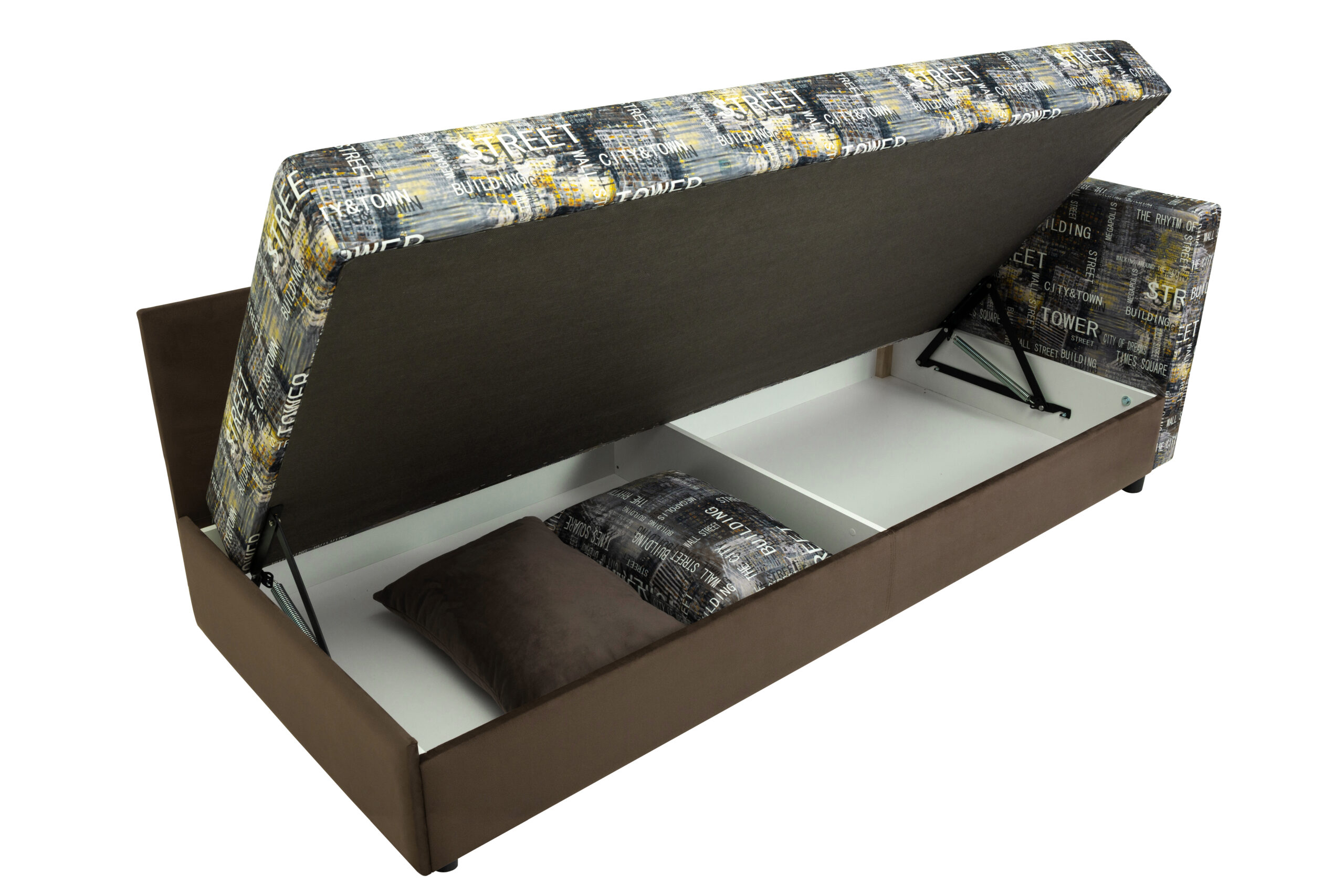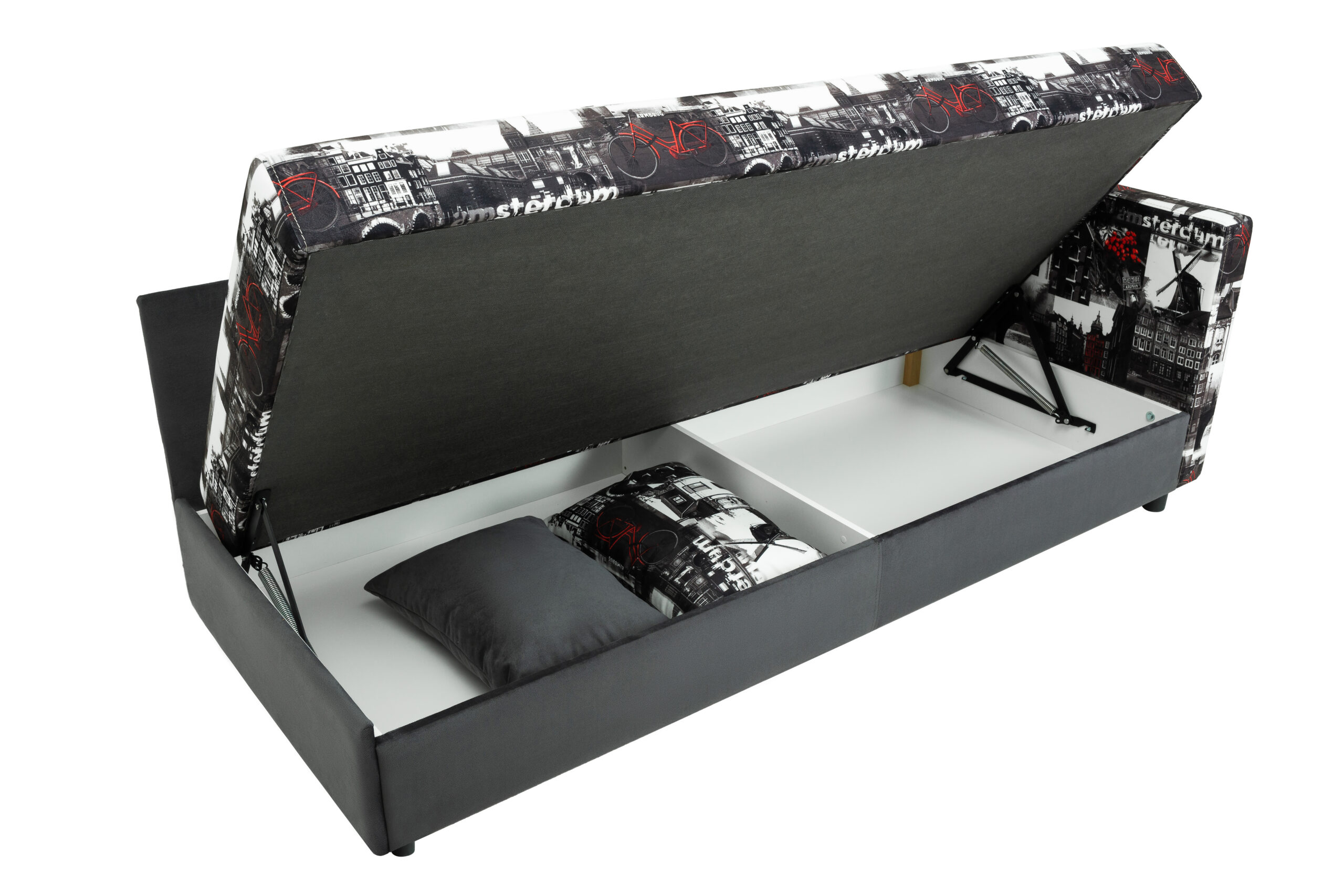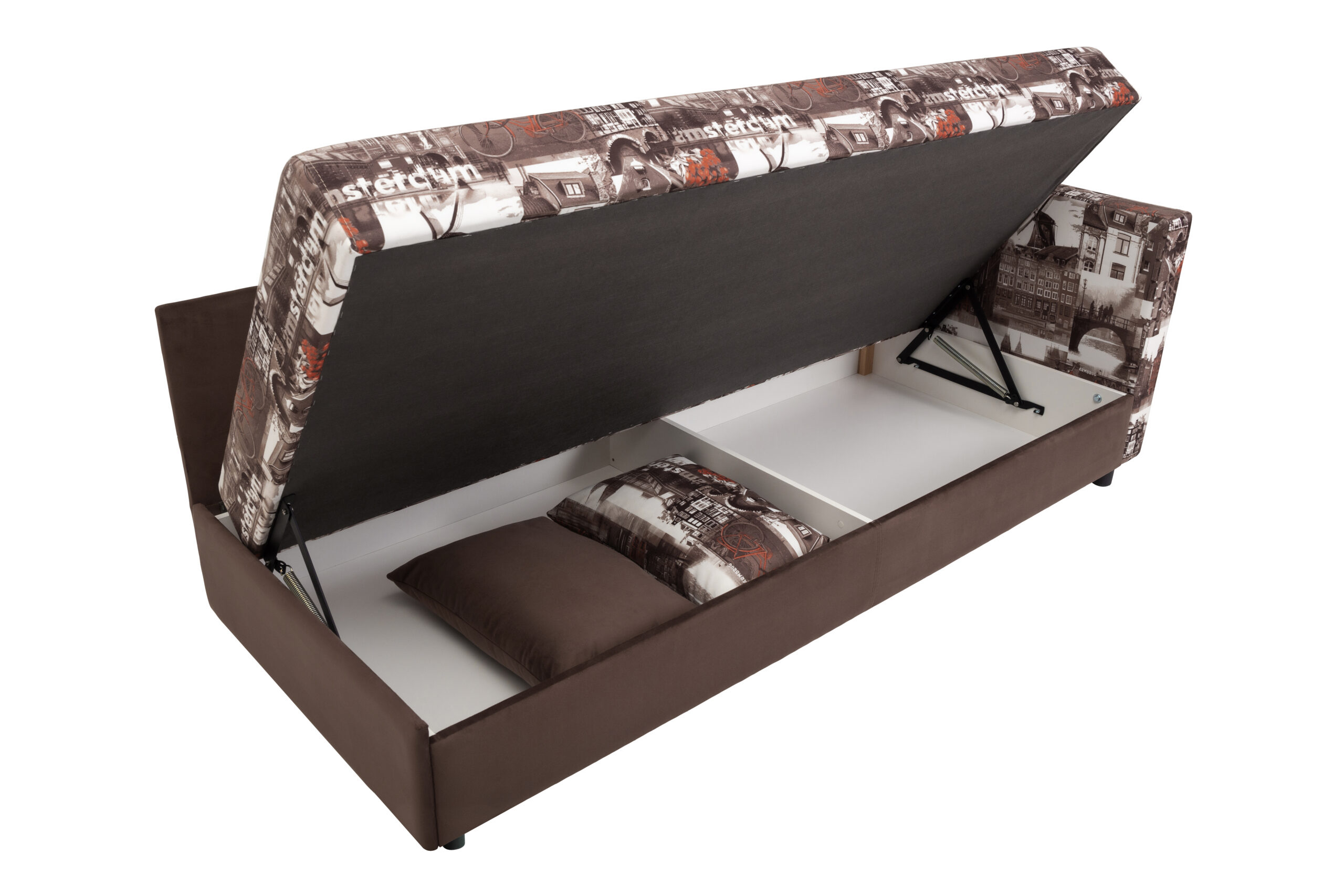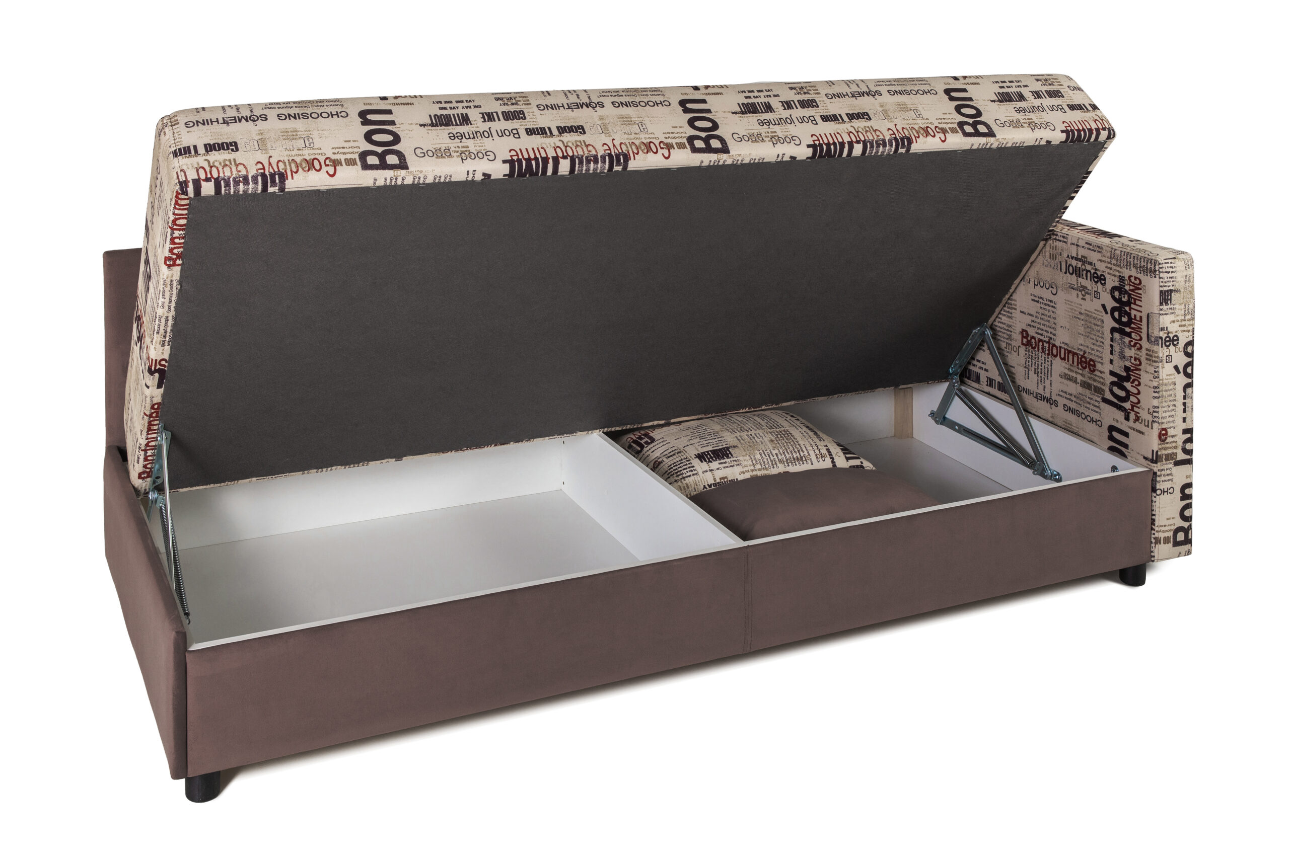 Тахта-кровать – один из типов мягкой мебели, которая отличается функциональностью и комфортностью. В ее конструкцию вмонтирован механизм, способный поднимать спальное место, открывая вместительный отсек для хранения.